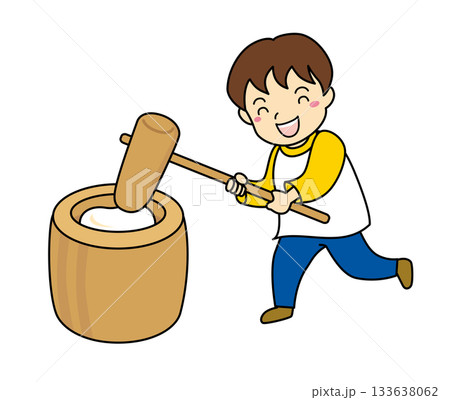 お餅つきをする男の子のイラスト