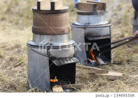 炊き立てのもち米 もち米 もち屋 餅屋 職人 正月 大晦日 穀物 祝い 風習 湯気