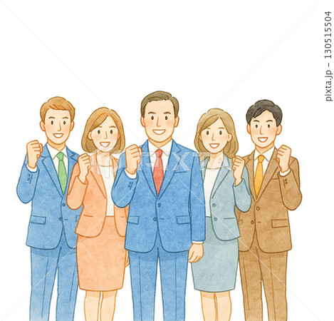 成功を喜ぶビジネスチーム 5人グループ イラスト素材