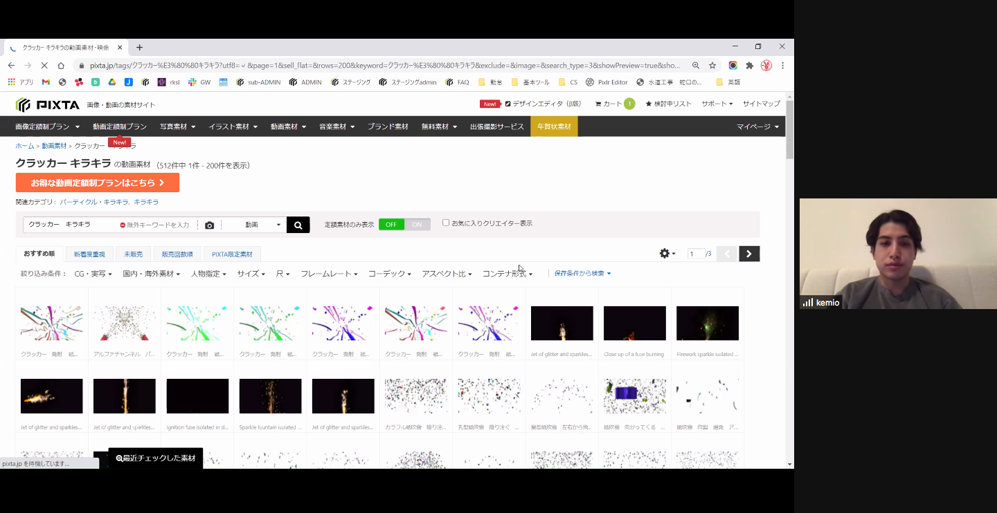 ――PIXTAのようなストックフォトは、使用料をお支払いいただき、ルールを守って素材を使っていただくことでクリエイティブ活動をサポートするサービスです。kemioさんの動画は撮り下ろしのイメージが強いのですが、素材があれば表現の幅が広がりそうですか?動画の企画によってはとても幅が広がると思います。 僕は話す動画が多いので、「話の例」に使う画像に、素材を使いたいなって思うことがあります。でも、そもそもそういうサービスがあることを知らなかったので。知らない人多いんじゃないかな。――そこで、今回PIXTAの素材を使えるようになるわけですが……。質問なのですが、人物が写っている素材も使用していいんですか?――はい! 当社の利用規約で禁止している、たとえば「特定の人物を想起させる偽のプロフィールをつけたりするような使い方をしない」など、利用規約を守っていただければ、kemioさんの動画にもお使いいただけます! (実際にPIXTA素材をみせながら、軽く素材を紹介)何か使ってみたいものありますか?