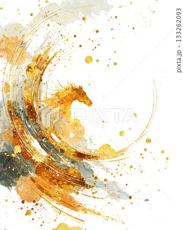 綺麗な水彩模様の午年のアイコンのイメージのイラスト