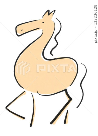 墨絵の笑顔で走るかわいい馬 2026 正月素材