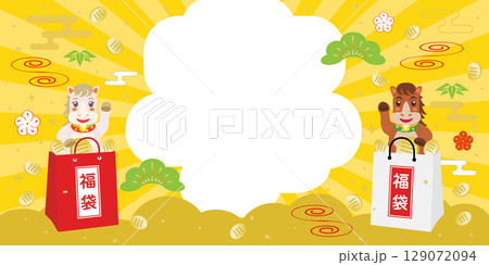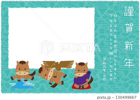 お正月の縁起物の馬のイラストのフォトフレーム年賀状素材