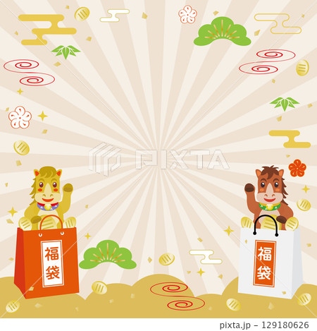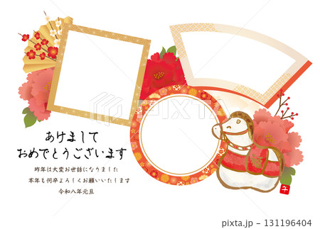 2026年午年 縁起物のフォトフレーム年賀状テンプレート