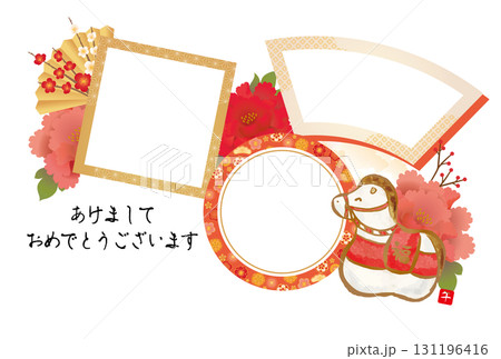 午年のかわいいフォトフレーム年賀状(文字なし)
