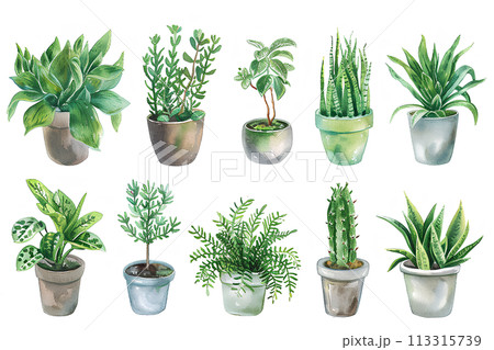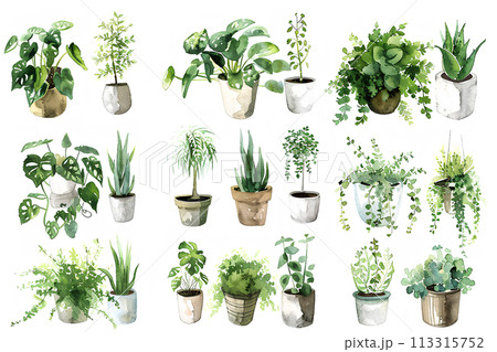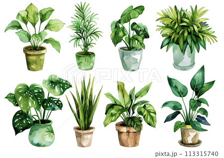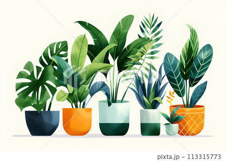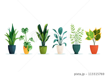 カラフルな観葉植物の集合アイコン