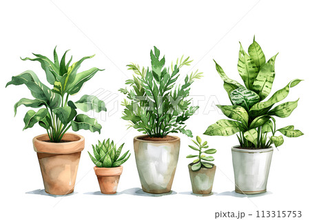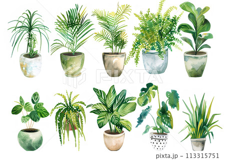観葉植物の集合イラスト-3