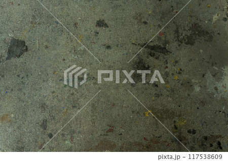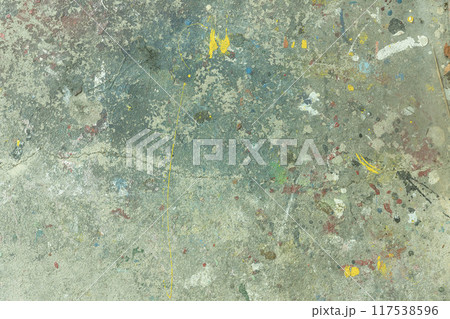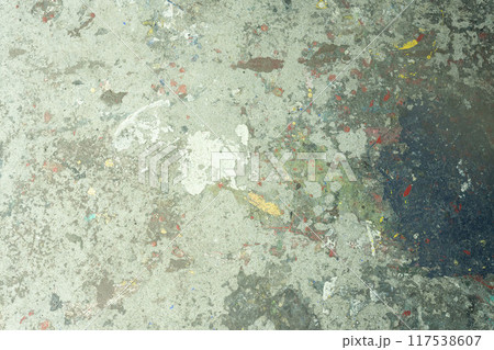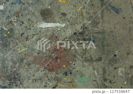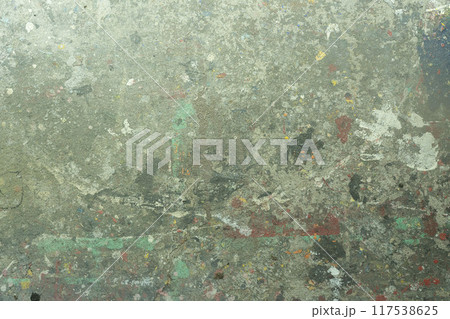 汚れた壁、スプレーで落書きされたコンクリートの壁、飛び散ったペンキ、吹き付けられたスプレー