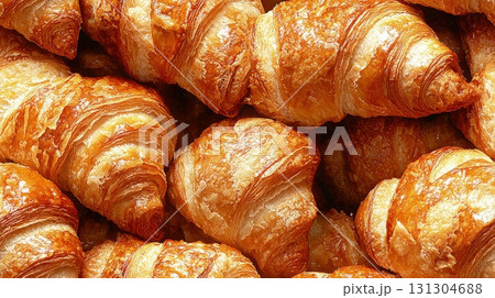 Crispy layered croissants freshly baked background