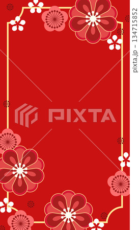 かわいい和風・紅白梅花の縦型フレーム
