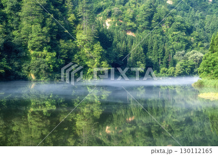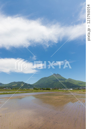 湯布院の水田と空の反射(大分県由布市湯布院)