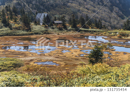 火打山 紅葉の高谷池と高谷池ヒュッテ