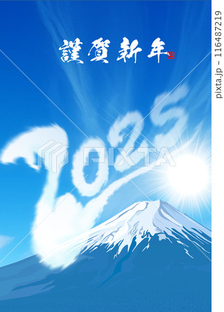 青空に浮かぶ雲と富士山 2025年度年賀状素材