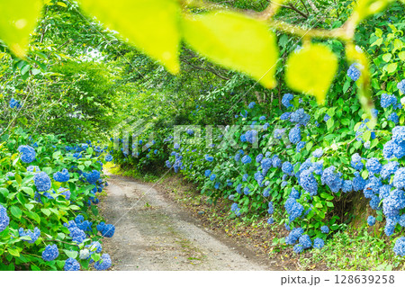 大自然の森に映える美しいアジサイの花(クローズアップ)コピースペース素材