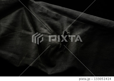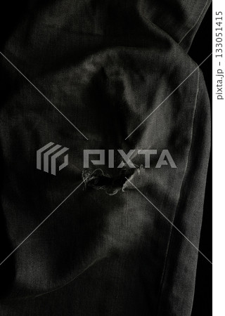 torn black danim texture background, textile of jeans fashion for clothing design
