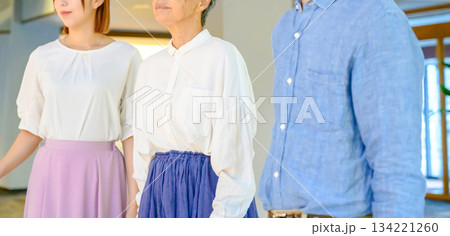 温泉旅行 浴衣姿のシニア女性二人 のれん