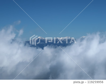 雲に包まれた雪山