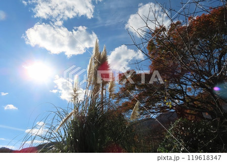 青空と白い雲とパンパスグラス