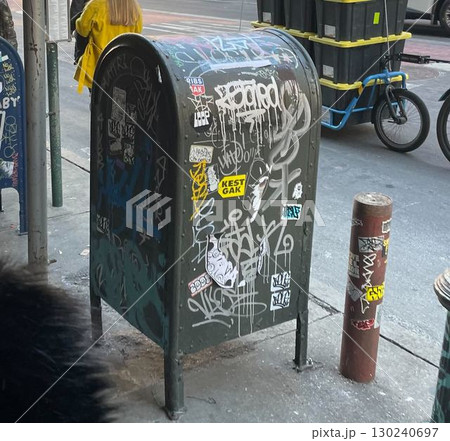 落書きとステッカーだらけになったニューヨークのポスト
