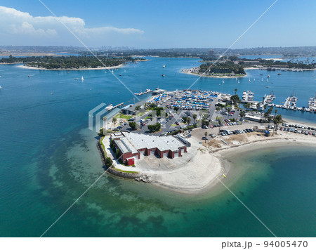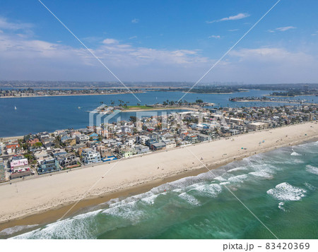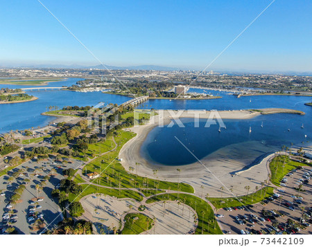 Aerial view of Mission Bay and beach in San Diego during summer, California. USA.