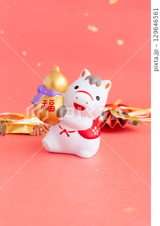2026年午年の干支 年賀状素材 赤い和紙背景