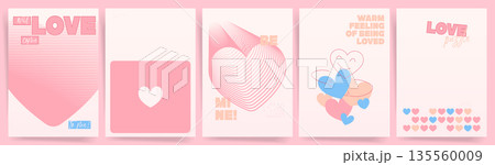 Pastel Valentine love poster templates with minimal romantic typography, cute heart patterns and soft modern backgrounds for cards and covers