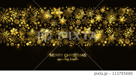 Gold and black seamless snowflake border, Xmas