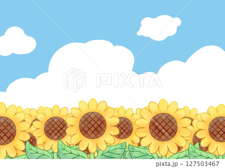 夏の入道雲とひまわり畑