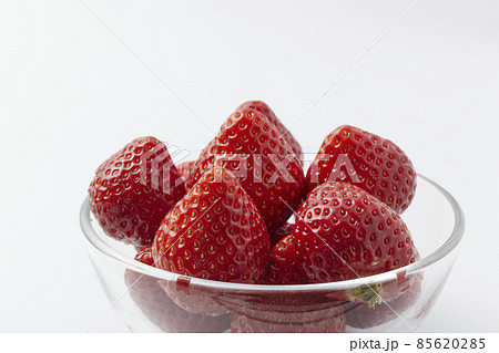 ガラスボウルに盛り付けられた旬の甘いイチゴ