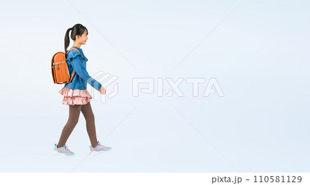 ランドセルを背負って歩く女子小学生
