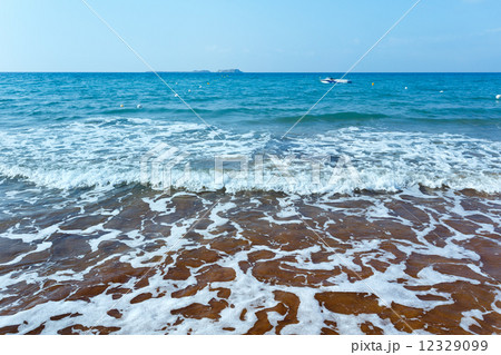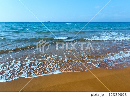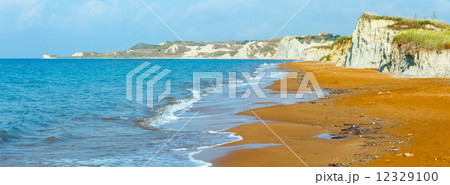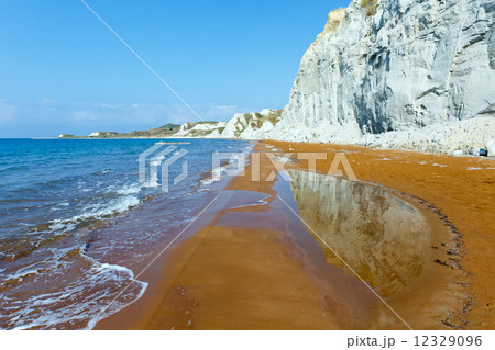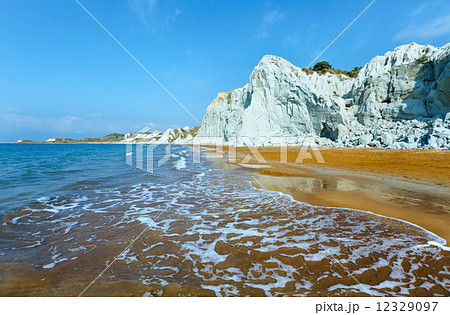 Hidden empty beach with pure clear turquoise sea water near white rock cliffs located in famous