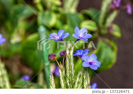 山口県の植物館にてマクロ・深度合成撮影した、鮮やかに咲く青いルリハナガサの花