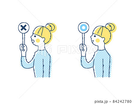 マルバツの札を持つ女性のイラスト素材セット