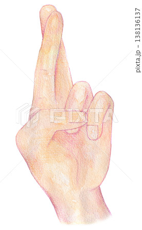 水彩イラスト 手描きイラスト 手のイラスト 幸運を祈る