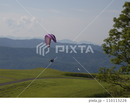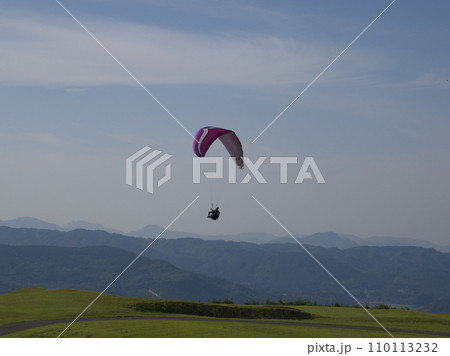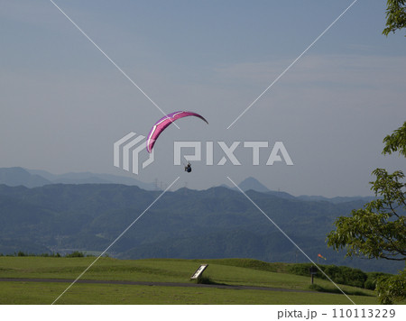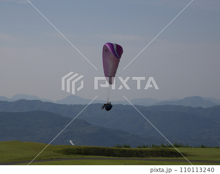 伐株山から飛び立つパラグライダー 大分県玖珠郡玖珠町山田