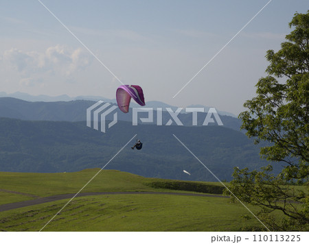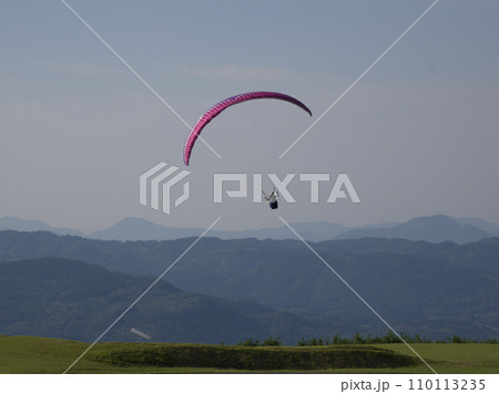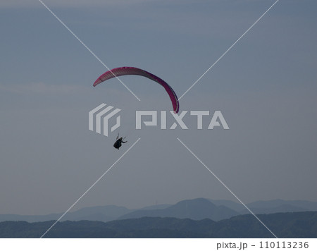 玖珠町上空を飛行するパラグライダー 大分県玖珠郡玖珠町山田