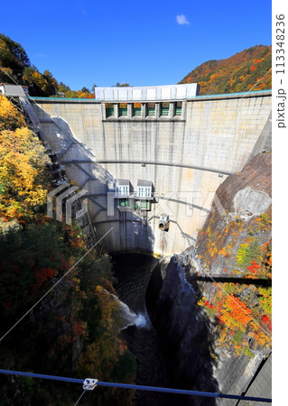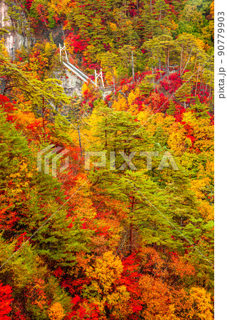 紅葉の瀬戸合峡と渡らっしゃい吊橋/栃木県日光市川俣