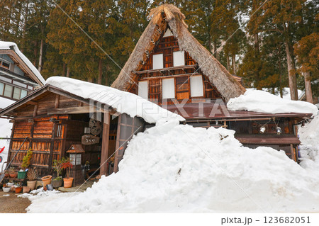 雪の積もった合掌造り古民家