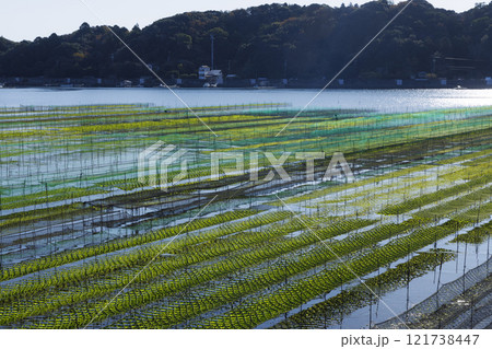 あおさ海苔養殖 アオサノリと海 海苔畑の風景