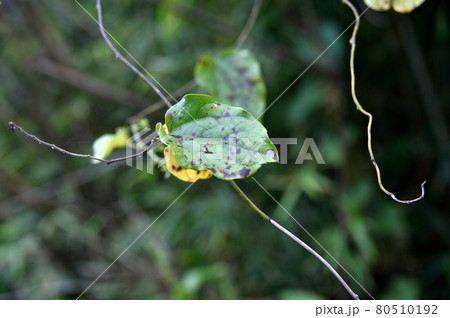 緑色のヤブツヅラフジの葉(秋、十一月)