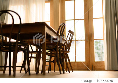 木製の大きなテーブルと椅子