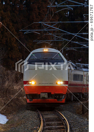 夕暮れのカーブを走行する485系あいづライナー 福島県磐梯町