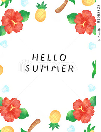 水彩 手描き カラフルでかわいいトロピカルなハイビスカスのフレーム