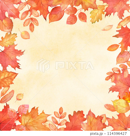 Square frame of autumn maple and oak leaves. Watercolor illustration on the theme of autumn for posters, exhibitions, fairs, holidays. Illustration isolated from the background.