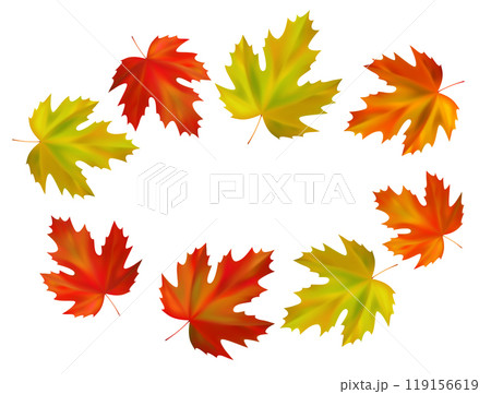Frame of realistic maple autumn leaves. Orange, yellow, red maple fall leaves swirl in the wind. Vector illustration