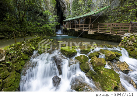 山口県 美祢市 秋芳洞 鍾乳洞 洞窟 川 入口