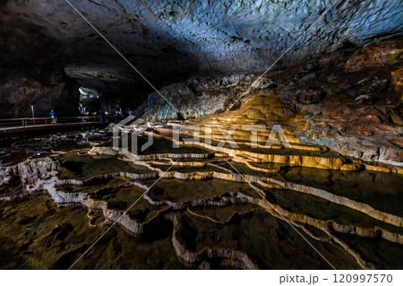 中国地方・秋吉台・秋芳洞・ライトアップされた美しい洞内のイメージ、千町田付近の風景・山口県美弥市