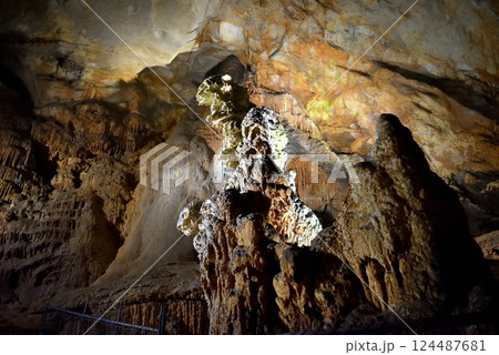 中国地方・秋吉台・秋芳洞・広庭のランドマーク、ライトアップされた洞内富士・山口県美弥市(2)