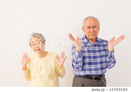 反対方向を向く50代後半の夫婦 夫婦喧嘩 イメージ