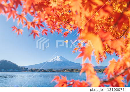 「山梨県」紅葉の河口湖と富士山・秋
